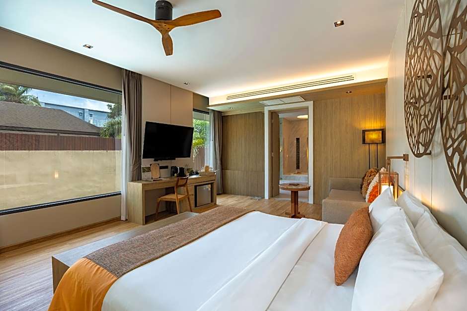 Private pool villas come with garden or terrace views, private entrances, balconies, and fully equipped kitchens (kitchenware, kitchenette). Bathrooms feature bathtubs with free toiletries, and rooms provide air conditioning and soundproofing. On-site amenities include free Wi-Fi, an outdoor swimming pool, a restaurant, a bar, a sun deck, a terrace, free parking on site, a fitness center, and a 24-hour front desk, plus streaming service like Netflix.